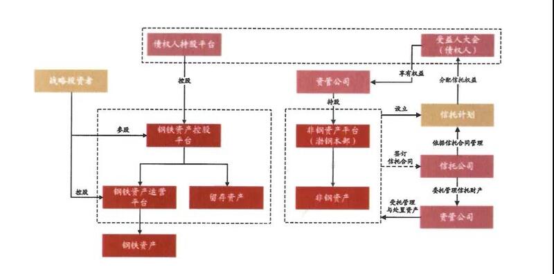 2、为钢铁资产平台引入战略投资者,且分别参与钢铁资产控股平台与钢铁资产运营平台;同时,将非钢资产平台相应资产委托信托公司,成立信托计划,并引入专业资管公司