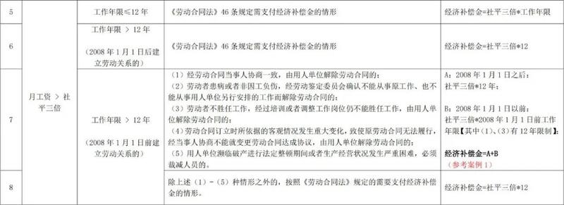 注:上表中“月工资”是指劳动者在劳动合同解除或者终止前十二个月的平均工资;“社平三倍” 是指用人单位所在地上一年度职工月平均工资三倍。